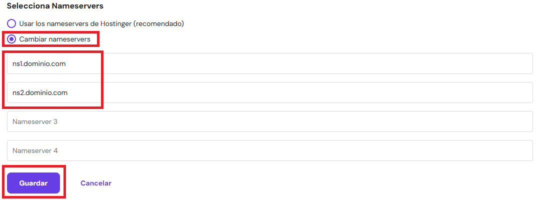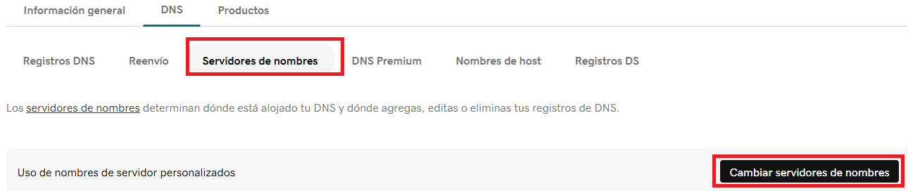 En la mayoría de los proveedores, esta opción se encuentra en la sección “Servidores de nombres personalizados” o “Name Servers”.