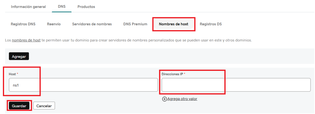 Para ello, se deben crear los Glue Records, que vinculan los nombres de tus servidores DNS (por ejemplo, ns1.tudominio.com y ns2.tudominio.com) con sus respectivas direcciones IP públicas.