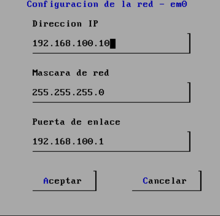 En el campo Servidor DNS, especifique su gateway o un servidor DNS externo válido. Este DNS será utilizado únicamente durante el proceso de instalación.