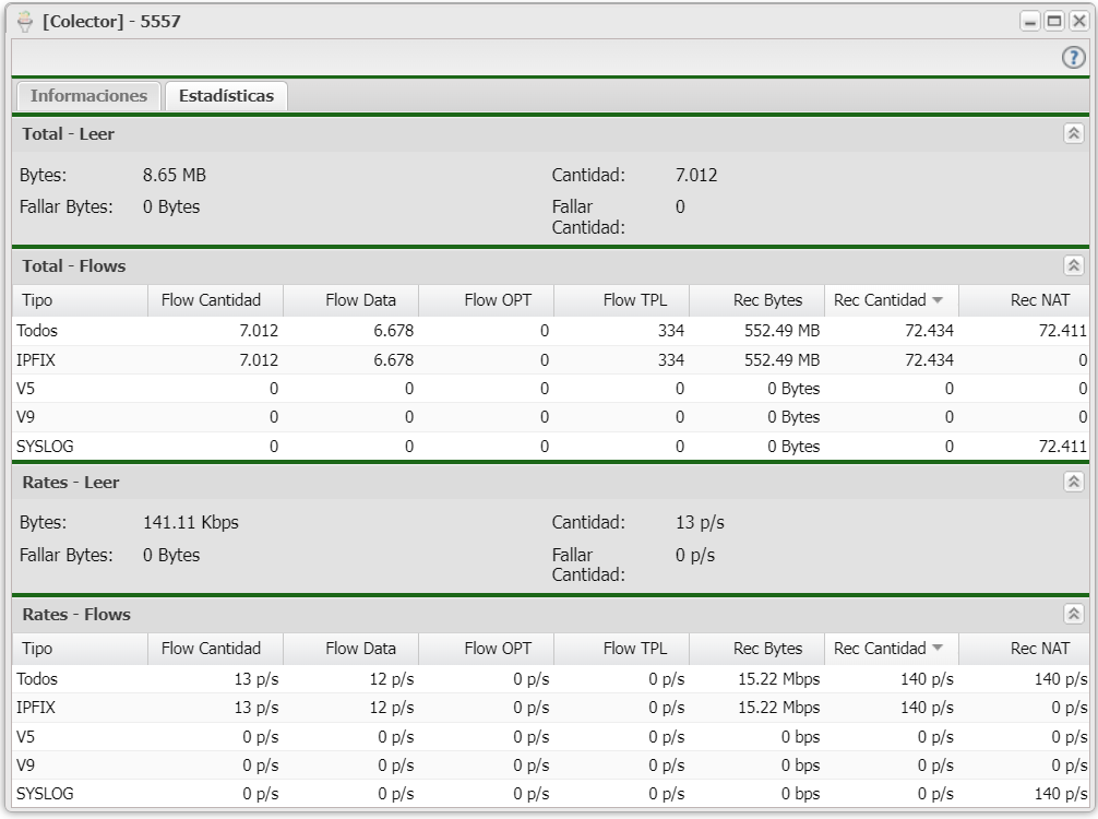 | Flow Cantidad | Cantidad de flows recibidos. |