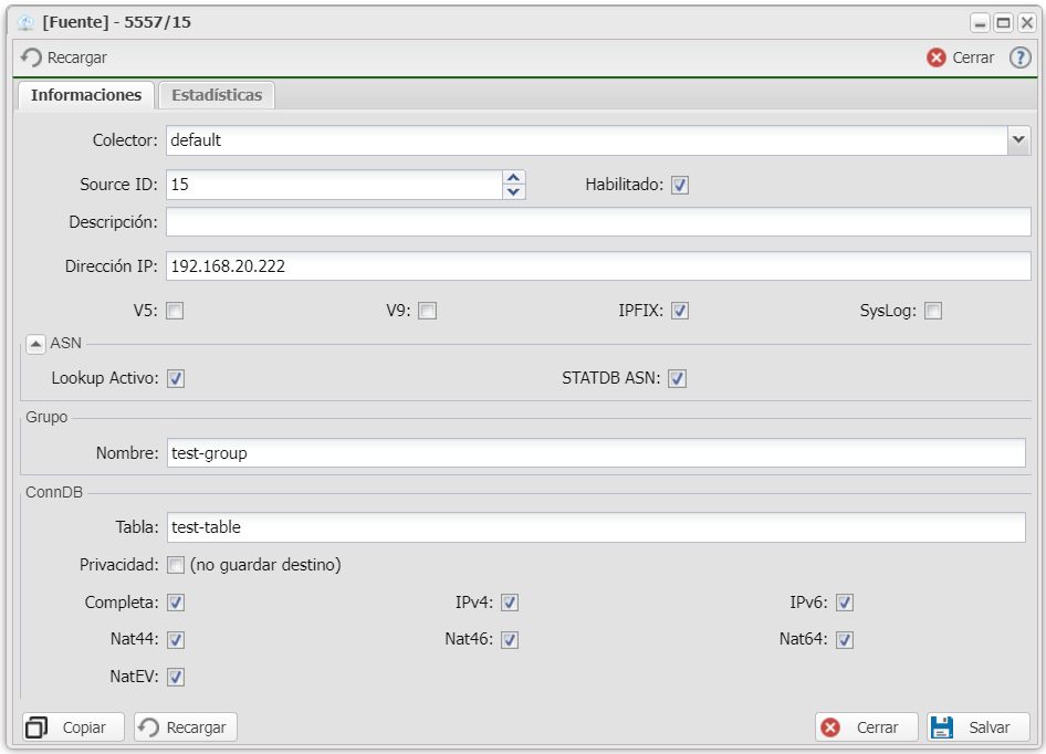 Lookup Activa Activa la consulta de ASN para los paquetes recibidos en este *source*