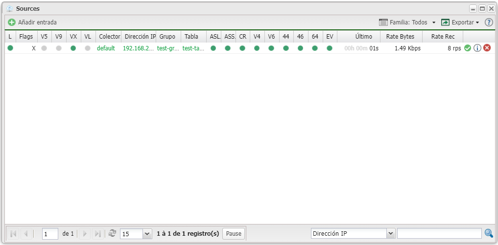 La aplicación *sources* sirve para configurar las fuentes que envían los *flows* al *Captor*.