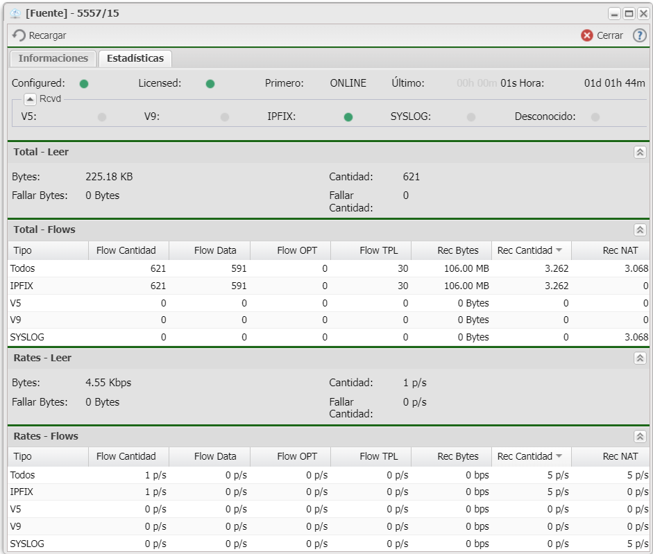 V5, V9, IPFIX, Unknown Verifica qué versión del *flow* está recibiendo