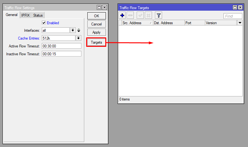 Debemos añadir un target para que Mikrotik envíe los flows al Captor.