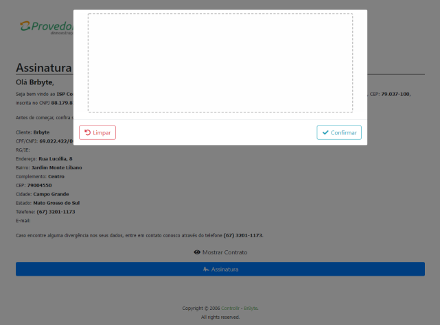 {CONT_PLAN} Imprime información sobre los servicios de Internet en el contrato. Plano 60Mb - R$ 179,00