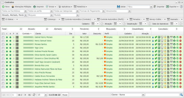 En este material, puedes crear filtros para listar y consultar contratos específicos en tu sistema. Para hacer esto, deberá ir a la lista de sus contratos y elegir uno de los filtros a continuación.